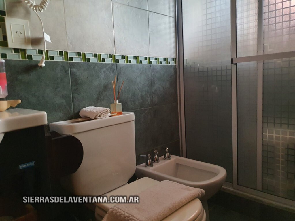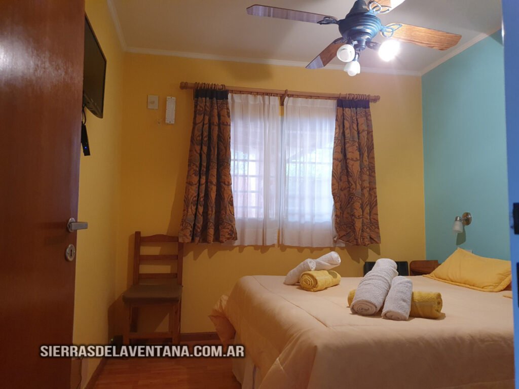 Apart en planta alta con vista a las sierras, totalmente equipado para cuatro personas. Tiene un dormitorio para dos personas con sommiers (puede armarse con cama doble o individuales), tiene cómoda, TV led, caja de seguridad y ventilador de techo. El ambiente comedor-cocina está equipado con jarra y cafetera eléctricas, microondas, vajilla completa, heladera bajomesada, cocina kitchenette de dos hornallas con horno, mesa y sillas de madera. También cuenta con un sommier del cual se saca un carrocama de colchón bajo. En este star tenemos ventilador de techo y aire acondicionado. El baño es completo y tiene ducha, vanitory, tender térmico y secador de cabello. La calefacción es por caldera con radiadores. Se provee de ropa blanca y toallones para la pileta. Hay TV led tanto en el comedor como en el dormitorio. Dispone de cochera para un auto y de una pequeña parrilla en planta baja.